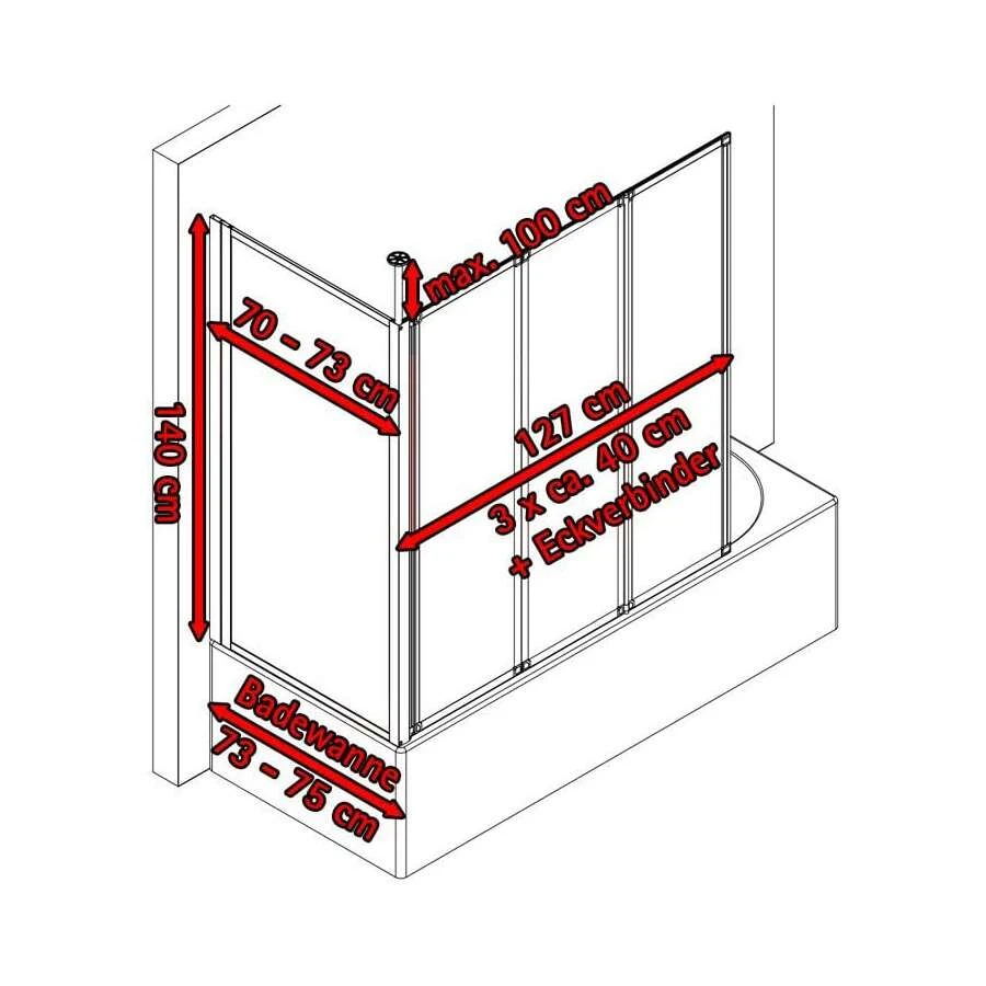 - Breite 1288 mm, Höhe 1400 mm, für Badewannentiefe 730 – 750 mm