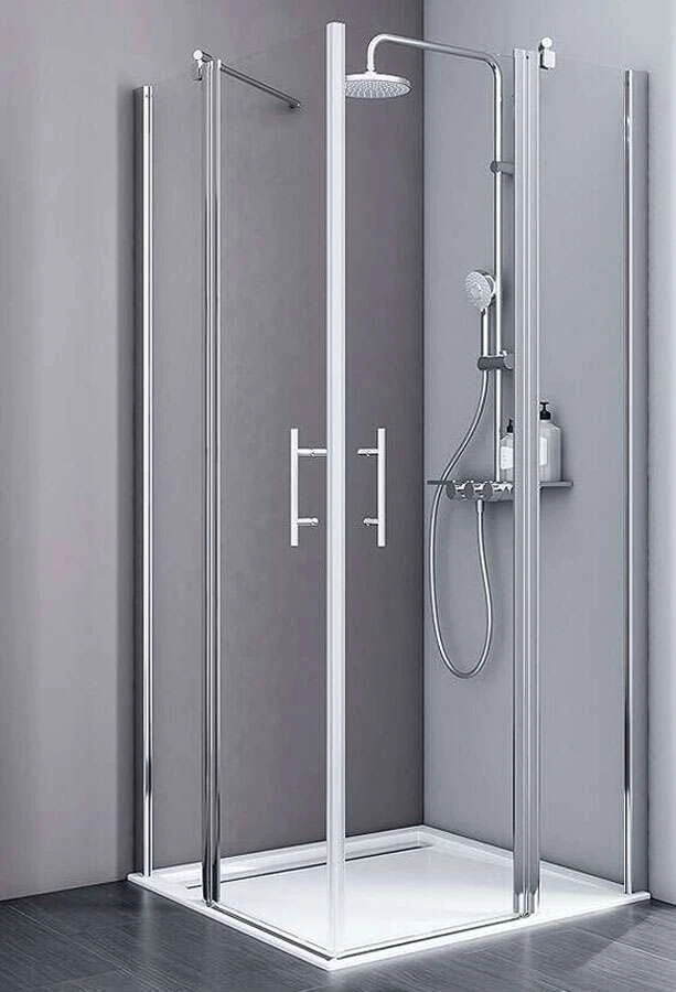 Eine Duschkabine im Standardmaß wird immer kürzer als angegeben gefertigt, z.B. ca. 850 mm statt 900 mm. Fordern Sie Ihren passenden Fliesenspiegel an. Eine reale Umsetzung ist im Sondermaß möglich.