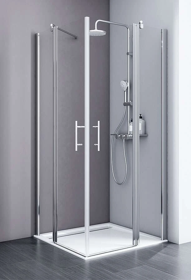 Eine Duschkabine im Standardmaß wird immer kürzer als angegeben gefertigt, z.B. ca. 860 mm statt 900 mm. Fordern Sie vor der Bestellung Ihren passenden Fliesenspiegel an.