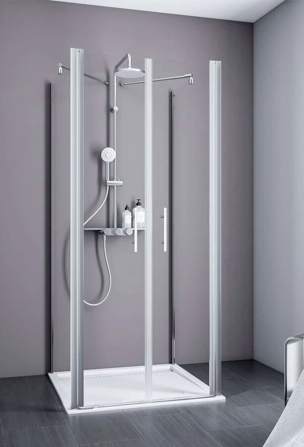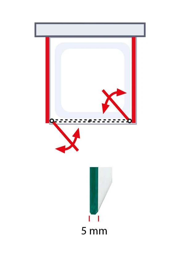 Eine Duschkabine im Standardmaß wird immer kürzer als angegeben gefertigt, z.B. ca. 860 mm statt 900 mm. Fordern Sie vor der Bestellung Ihren passenden Fliesenspiegel an.