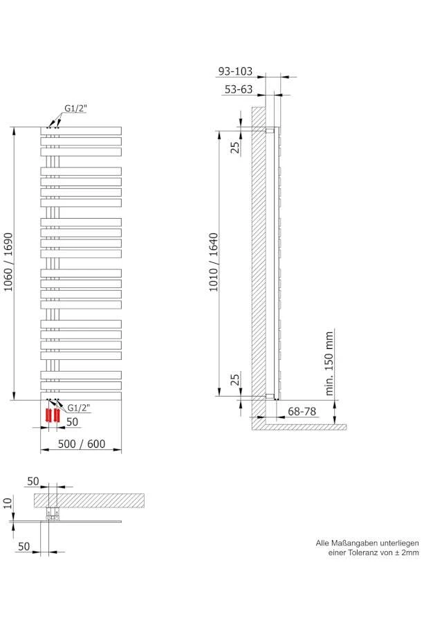 - Leichte Montage, keine Fachkenntnisse notwendig. Halterungen an die Wand schrauben und Heizkörper einhängen