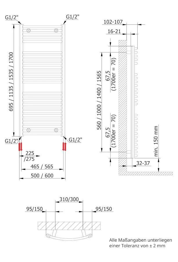- Wandabstand: 16 – 21 mm