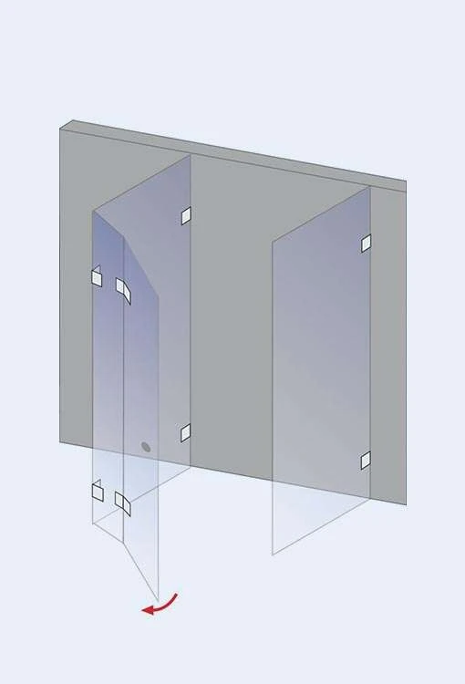 - innenbündige Scharniere, eckig oder halbkreisförmig aus hochwertigem Alu-Druckguss, verchromt
