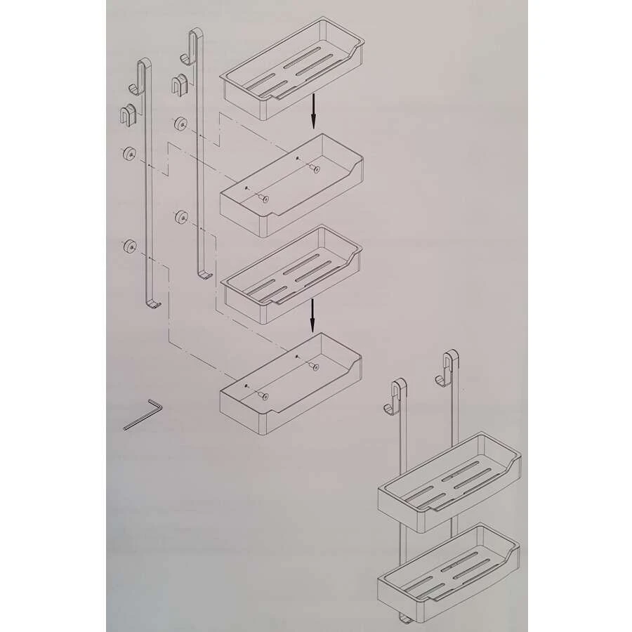 - die ausgeschriebene rechteckige Duschablage mit 2 Ablagen