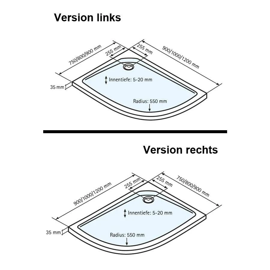 - Duschbecken in der ausgewählten Größe