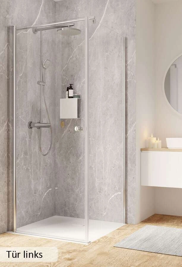 - die ausgeschriebene Duschtür + Seitenwand in der gewünschten Konfiguration