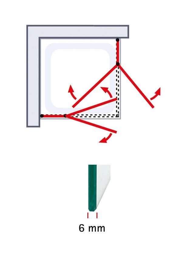 Eine Duschkabine im Standardmaß wird immer kürzer als angegeben gefertigt, z.B. ca. 860 mm statt 900 mm. Fordern Sie vor der Bestellung Ihren passenden Fliesenspiegel an.