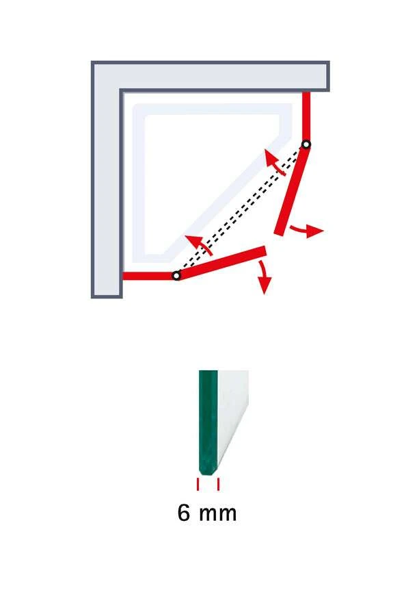 Eine Duschkabine im Standardmaß wird immer kürzer als angegeben gefertigt, z.B. ca. 860 mm statt 900 mm. Fordern Sie vor der Bestellung Ihren passenden Fliesenspiegel an.