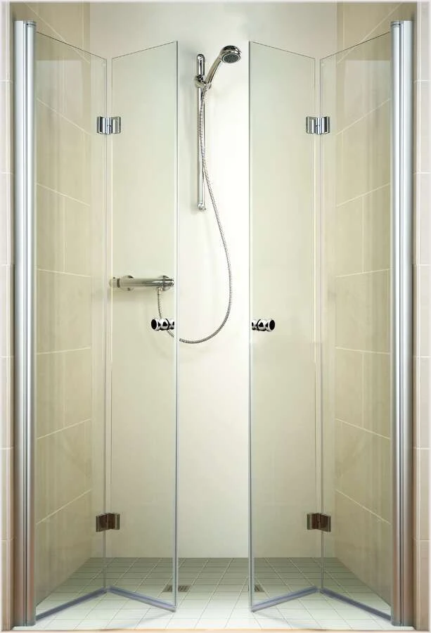 - hochwertig verchromte, innenbündige Scharniere aus Alu-Druckguss