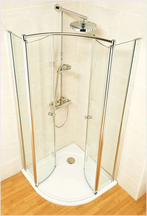 Eine Duschkabine im Standardmaß wird immer kürzer als angegeben gefertigt, z.B. ca. 860 mm statt 900 mm. Fordern Sie vor der Bestellung Ihren passenden Fliesenspiegel an.