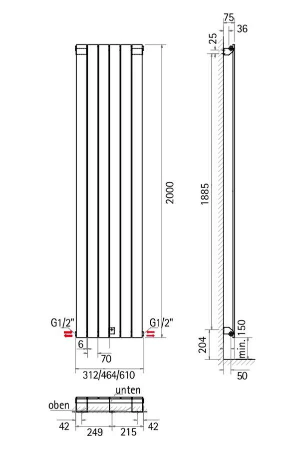 - Nabenabstand = Breite des gewünschten Heizkörpers