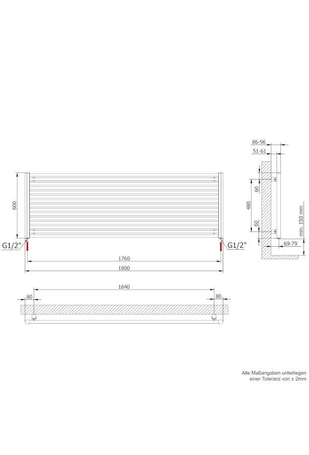- der Heizkörper muss immer breiter als hoch sein, dabei darf nur eines der Maße 960 mm überschreiten (entweder Höhe oder Breite)