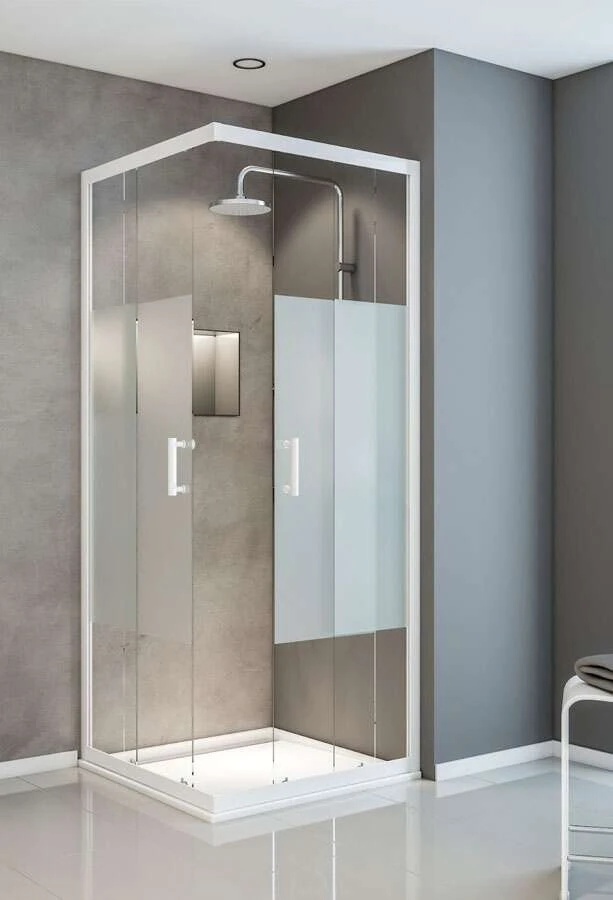 - Eckeinstieg Ausführung Echtglas klar hell mit Dekor Dezent light