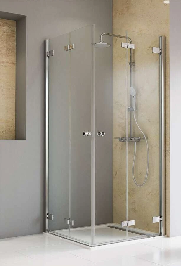 Eine Duschkabine im Standardmaß wird immer kürzer als angegeben gefertigt, z.B. ca. 860 mm statt 900 mm. Fordern Sie vor der Bestellung Ihren passenden Fliesenspiegel an.